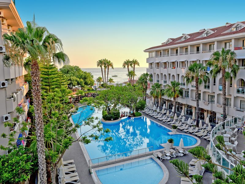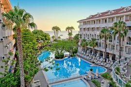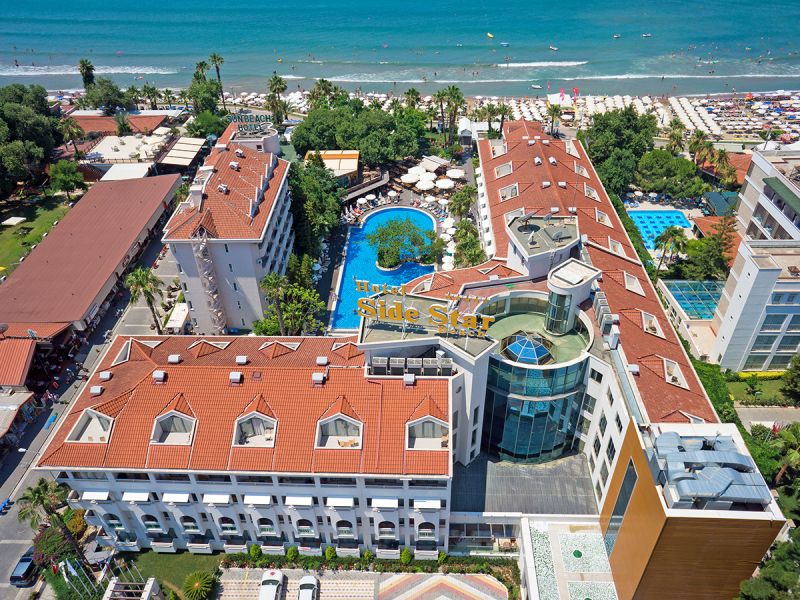 Het fijne 5-sterrenhotel Side Star Beach is ’s zomers en ’s winters dé plek voor een heerlijke zonvakantie onder de Turkse zon. Het hotel biedt alles wat je nodig hebt; comfortabele kamers, verzorging op basis van All Inclusive, fijne sport- en spafaciliteiten, kinderfaciliteiten en een perfecte locatie om op ontdekkingstocht te gaan. Steek je de gezellige wandelpromenade namelijk over, dan sta je direct op het privé zandstrand van het hotel. Vanuit hier loop je gemakkelijk naar het vlakbij gelegen historische centrum van Side.